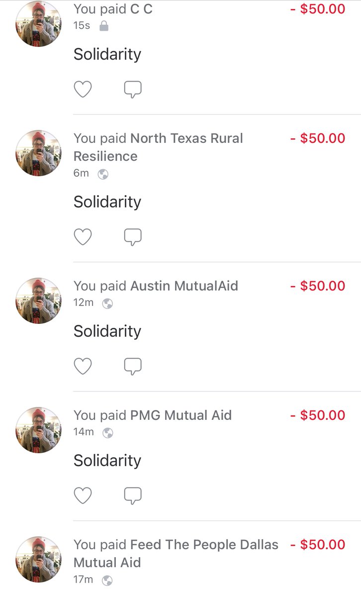 I’ve lived houseless and it’s scary being cold without power but I’m in the position now to donate to mutual aids in solidarity (receipt attached) please do too. Full doc at https://docs.google.com/document/u/0/d/11GplfTTLRv6yV-2AC6GFw5Gy4izlPdGSay1HdRQcRjQ/mobilebasic …pic.twitter.com/80gNxT9BWd