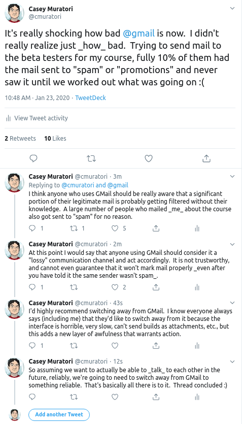 @youtube's video uploader has a bug where clicking on the "playlists" box occasionally just hangs the playlist UI forever. This bug has been in the software for _five years_. They are obviously not even trying.এই থ্রেডটি দেখানধন্যবাদ। আপনার সময়রেখাকে আরো ভালো করে তুলতে টুইটার এটিকে ব্যবহার করবে। পূর্বাবস্থায়পূর্বাবস্থায় -