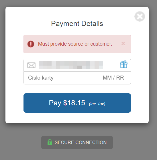 Yahoo it worked! Tried it without a VPN, no go, with adblock turned off, no go. Tried a different credit card, no go, tried a different mail, hard refresh, no VPN, no adblock and clicking the pay button instead of typing "enter" and then it finally succeeded