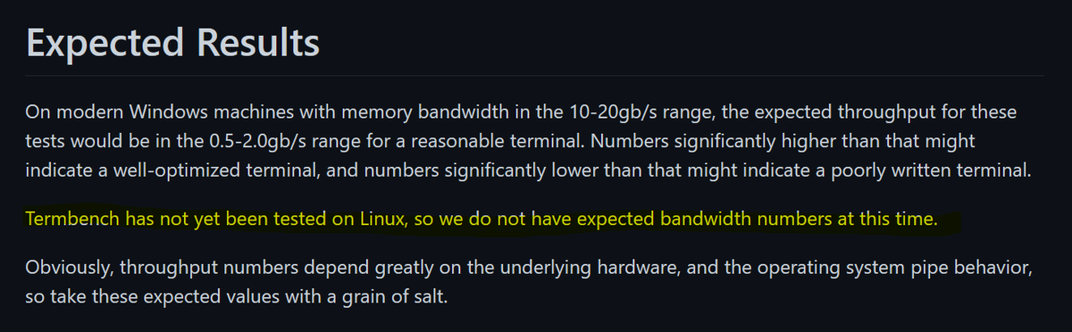 And this is all already in the README, and we even specifically say we have not done Linux testing so those numbers are for Windows.pic.twitter.com/ZlGvVA6aZa