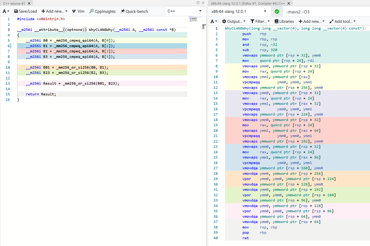 [12/*] I am not an optimization person. I maybe spend a week every three months looking at ASM. This has happened to me _three times in the last year_. It's almost 100% of the time I've looked at CLANG ASM, I have hit something like this.
