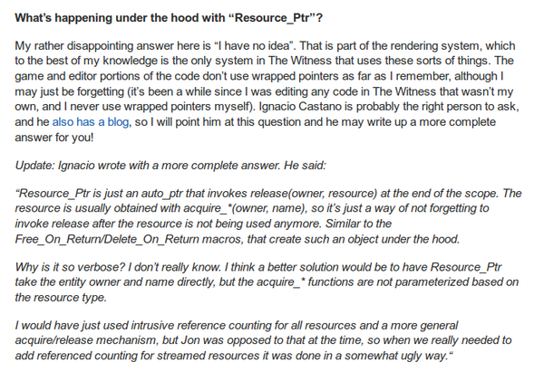 Update to Witness Wednesday from @castano where he talks about Resource_Ptr (http://mollyrocket.com/casey/stream_0027.html …):pic.twitter.com/Okxl1Q6ufQ