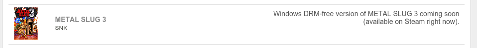 When I bought it, @humble said DRM-free Metal Slug 3 for Windows was coming "in 72 hours".