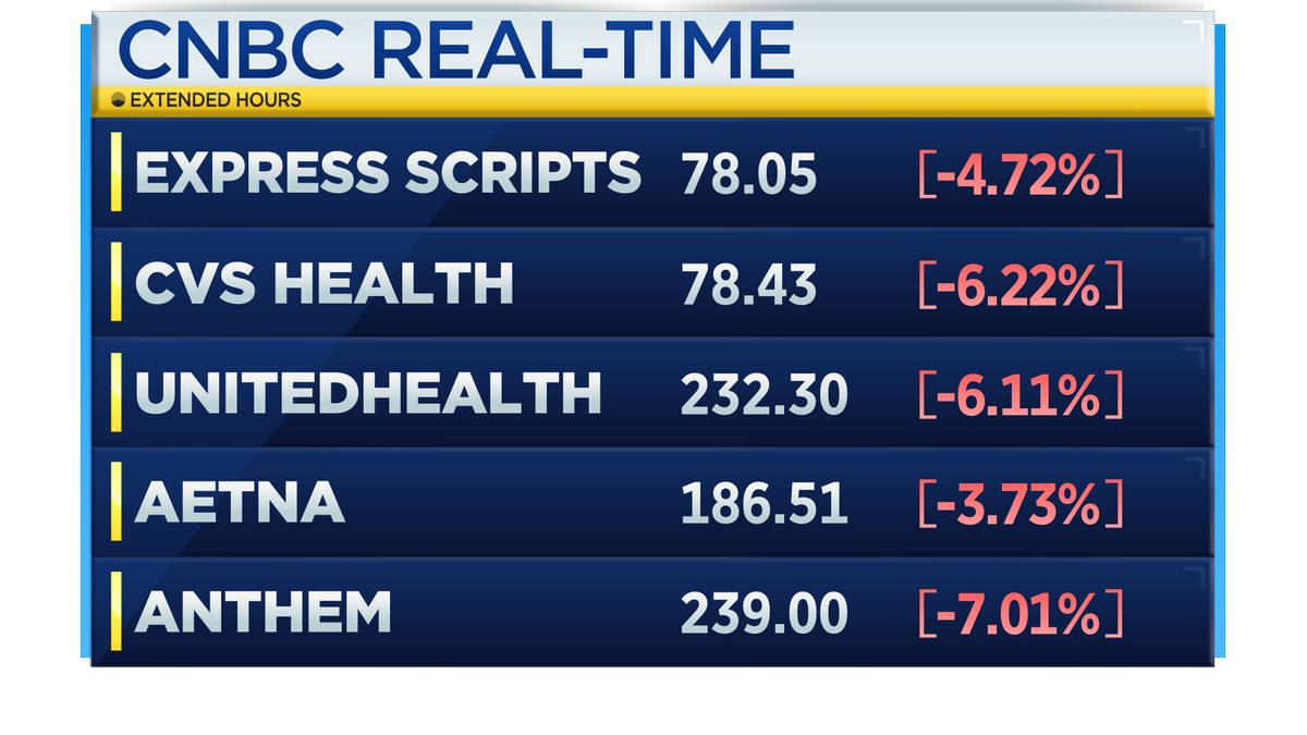 Shares of pharmacies, benefit managers & health insurers moving sharply lower in pre-market trading after Amazon, JPM, Berkshire announce partnership on employee health care http://cnb.cx/2rQeRnV pic.twitter.com/SwXlyckpds