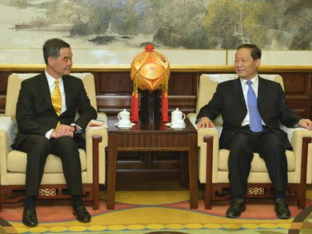 行政長官梁振英在北京與廣西壯族自治區黨委書記彭清華會面。梁振英祝賀廣西去年有可喜的經濟增長,並表示過去兩、三年港桂在經貿等多方面的關係越趨密切。 #行政長官 #梁振英 http://j.mp/1YiJSXo pic.twitter.com/nvXiA2273Q