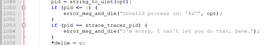 Co-worker just found this gem in the Linux utility strace.pic.twitter.com/Z9RcQMSQwT