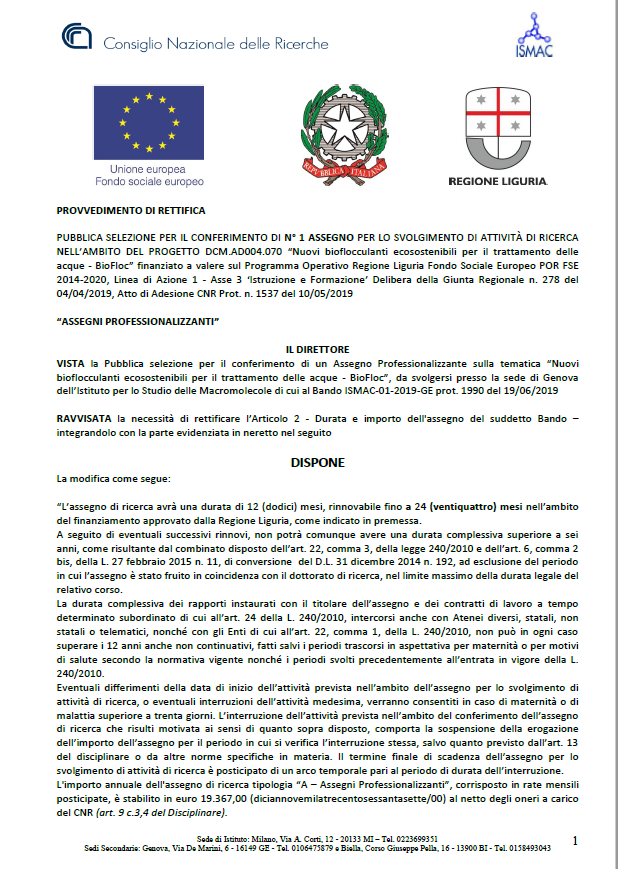 #AssegnoRicerca per titoli e colloquio Bando@cnr_ismac ProtISMAC1990 POR FSE di@RegLiguria https://bandi.urp.cnr.it/doc-assegni/documentazione/8909_DOC_IT.pdf … Conoscenze nell'ambito della scienza e tecnologia macromole, sintesi organica e caratterizzazione di polimeri e materiali polimerici#cnrpic.twitter.com/gdKZp9xXmy