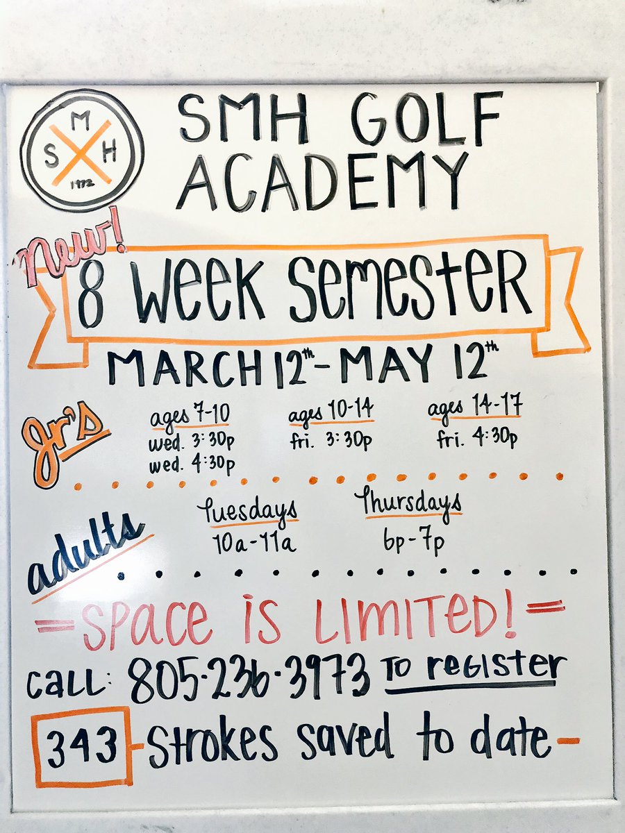 SMH GOLF ACADEMY - New semester 3/12 through 5/12! Sign up today!! 805-236-3973pic.twitter.com/XcDGEwetcj