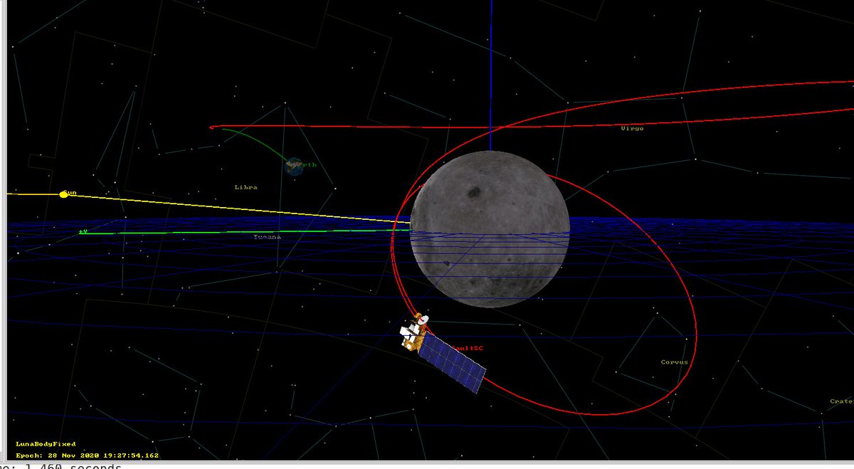 With Bill Gray's TLE for @Change5 and some help from Cees Bassa we are able to get a decent estimate of the lunar orbit insertion time. 28 Nov 2020 14:21:27.506 at 3150.669km lunar periapsis. Note my original guess: https://twitter.com/coastal8049/status/1329197419616030720 … pic.twitter.com/SQppLJcxJc