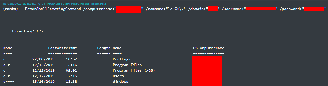 I'm pretty happy that one of my changes in SharpSploit v1.5 allows us to get output from PowerShellRemotingCommand in Covenant now. It's the small things in life