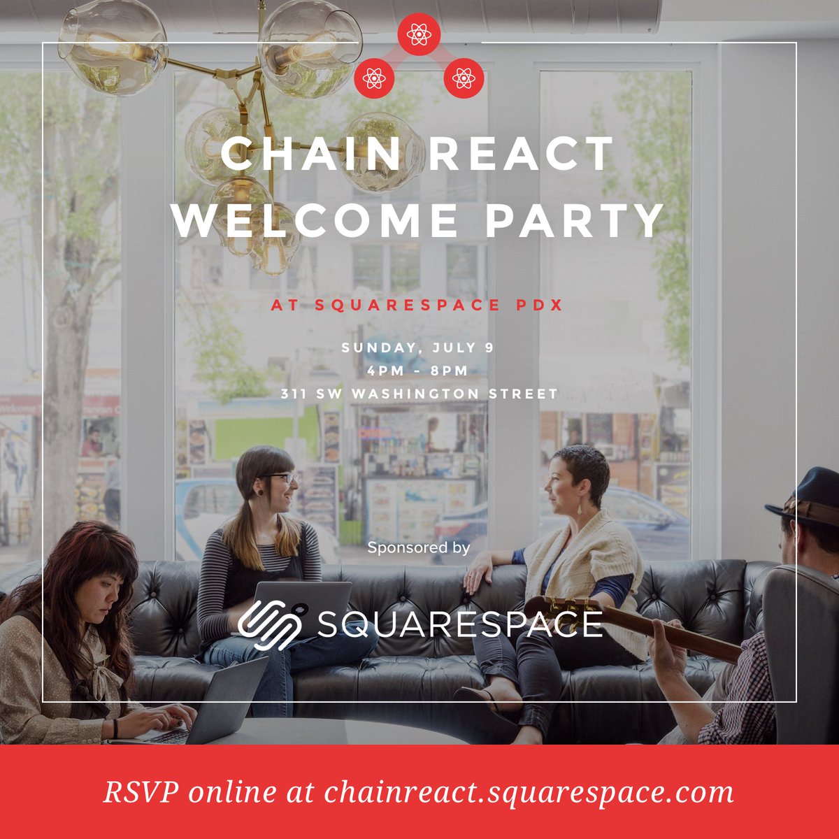 #ChainReact2017 Welcome Party by@squarespace! All are invited—RSVP so they know how many to prep for! http://chainreact.squarespace.com pic.twitter.com/uqZpkk1v6O