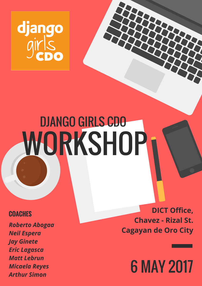 @djangogirlscdo workshop is in 3 weeks! May 6, 2017
