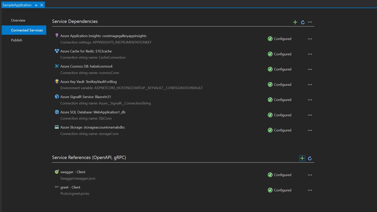 @VisualStudio 16.6, you can easily connect your http://ASP.NET Core or@AzureFunctions app to the following services: Data: SQL, Storage, Cosmos, Redis Real-time: SignalR Secret: KeyVault Open API & gRPC Try out the new and improved Connected Services experience.pic.twitter.com/NWgUC15UGz