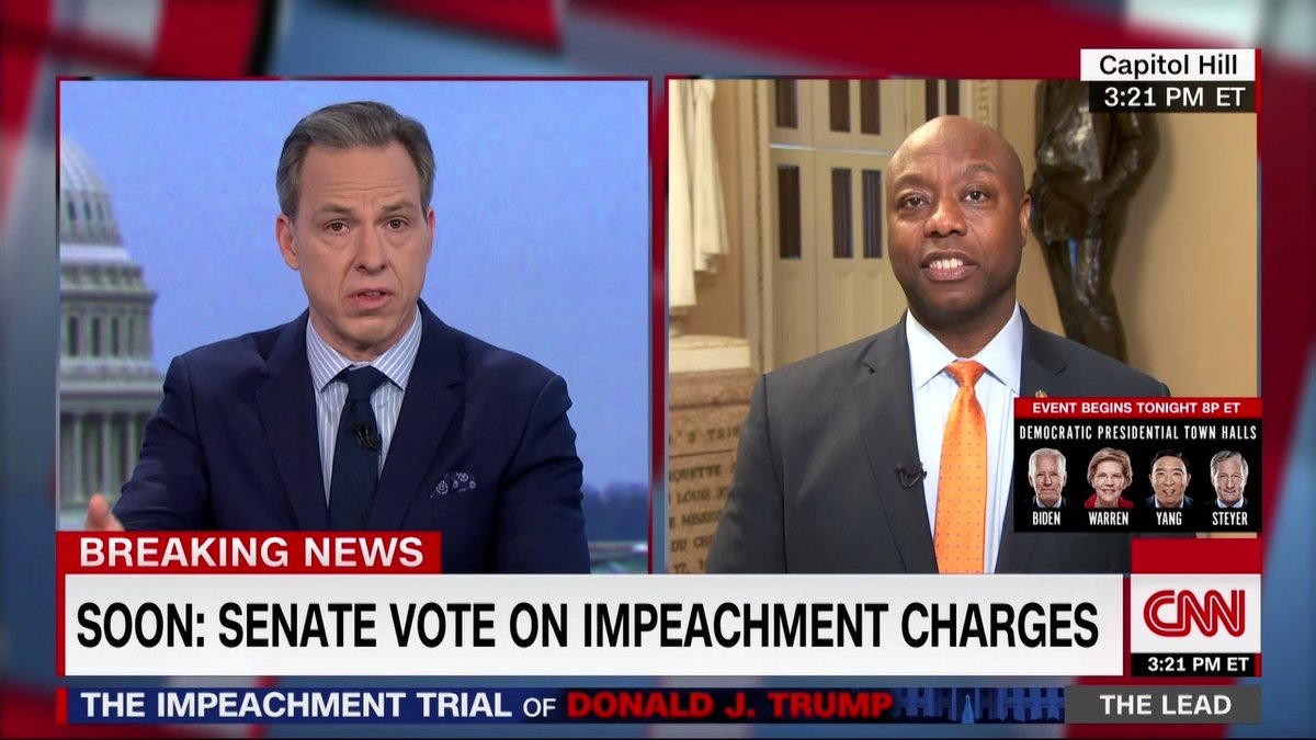 Yikes. Scott laughs off the idea that Trump isn’t even able to comprehend why what he did was wrong.https://twitter.com/CNNPolitics/status/1225154536517578752 …