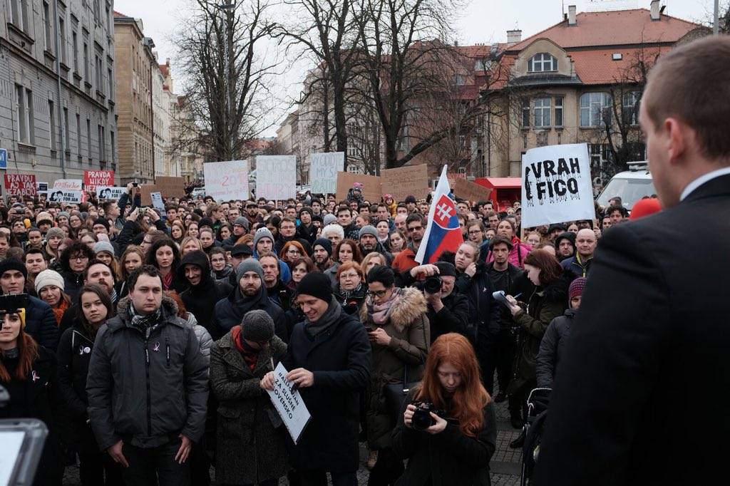 #AllForJan movement in Prague, together with thousands more in Slovakia and all over the world. Demanding justice, proper investigation of#JanKuciak ´s murder and murder of#MartinaKušnírova and sending the@RobertFico government away.pic.twitter.com/Q7R7UrF8Ha