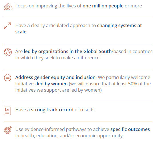 #opencall for our 3rd round of grants is now live! Inviting initiatives rooted in the#GlobalSouth seeking to improve the lives of at least 1 million women, men and children in the areas of health, education, and/or economic opportunity.#applynow https://is.gd/0ZWOy5 pic.twitter.com/5j4lAxK8KK