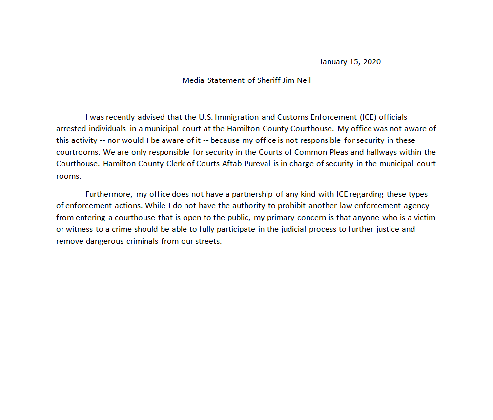 Rumors are circulating in the community that the Hamilton County Sheriff's Office is working with the U.S. Immigration and Customs Enforcement Agency by arresting undocumented immigrants at the Hamilton County Court House. This is completely false.pic.twitter.com/JYyg0t2nuI