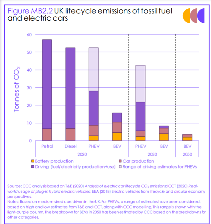 Here's the life cycle emissions assessment of EVs vs internal combustion vehicles in the UK from the latest