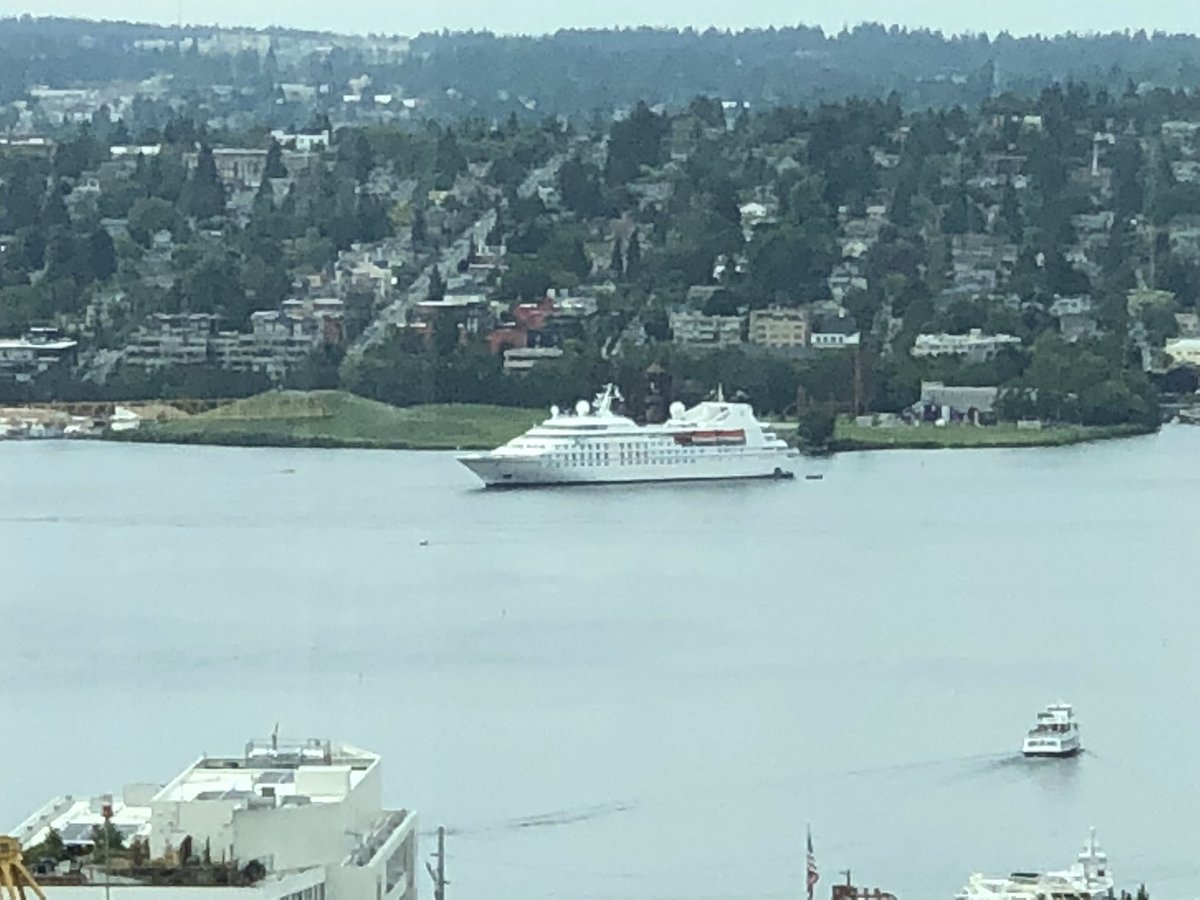 The Star Legend on Seattle’s Lake Union. A bit bigger than my kayak. Taken from the Amazon Oscar building. @WindstarCruisespic.twitter.com/yiaovKTQ1l