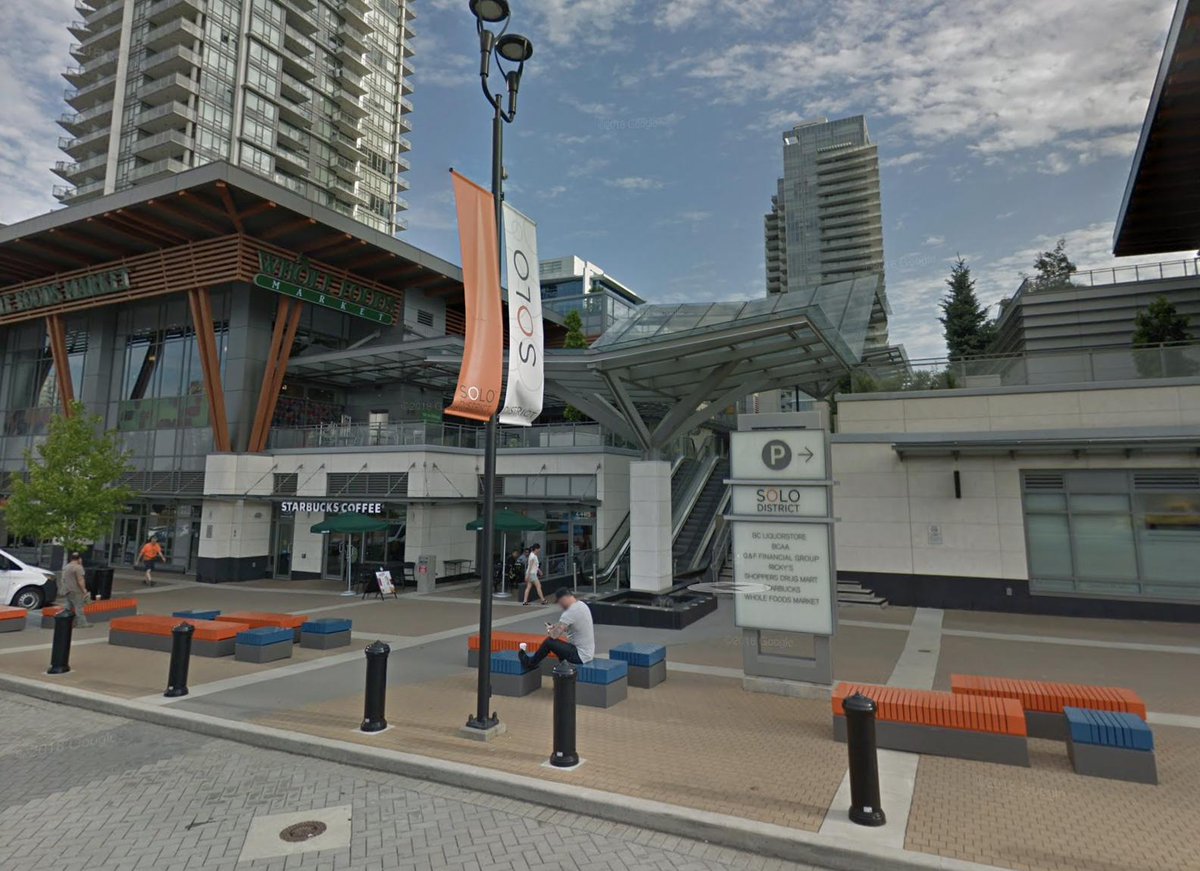 The whole point of that roof is to cover the stairs leading up from the sidewalk, so...