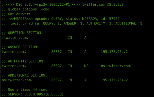 time for twitter to use dnssec RT @TelecomixTurkey: fake 8.8.8.8 result from a DNS query for https://twitter.com .pic.twitter.com/9TVxvUjQ36
