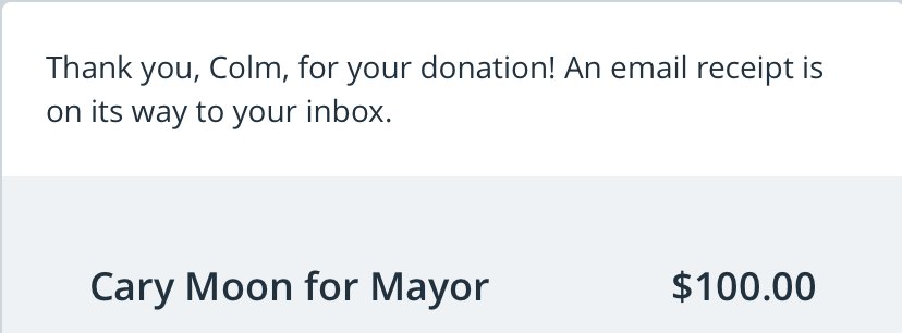 As a green card holder, it's a few more years before I can vote, but I can still participate by donating to @CaryMoon4Mayor and @ElectManka.pic.twitter.com/YmraI5lRLA