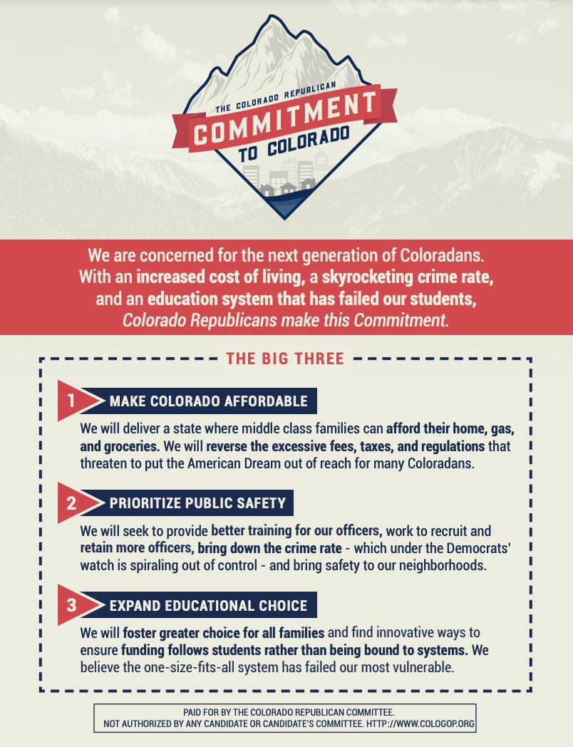 Make sure you go check out the Colorado Republicans' Commitment to Colorado. We are concerned for the next generation of Coloradans and are focused on making Colorado affordable, prioritizing public safety, and expanding educational choice. See it now: https://commitment2colorado.com pic.twitter.com/GxjKgRWpZc