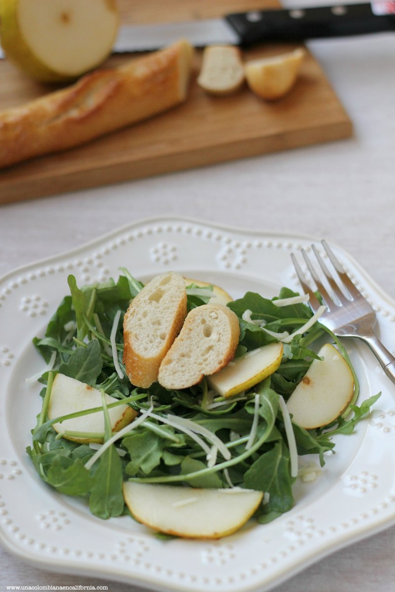 Ensalada de rúgula y peras, el acompañante ideal para un plato de pasta o una rica carne.