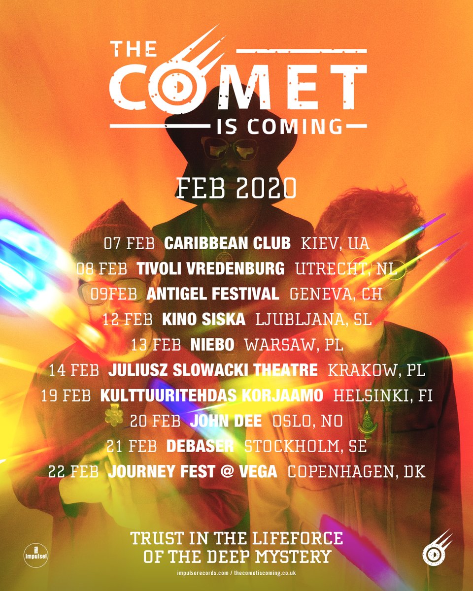 Kiev, Utrecht, Geneva, Ljubljana, Warsaw, Krakow, Helsinki, Oslo, Stockholm and Copenhagen. The Comet is Coming to Summon The Fire! Join us this February https://www.thecometiscoming.co.uk/tour/ pic.twitter.com/htkDzDTZJa