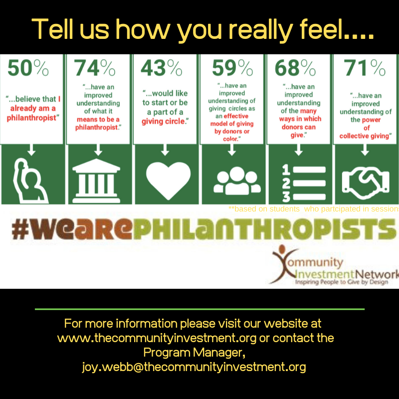 #WeArePhilanthropists provides a recurring presence of difference makers, organizes outreach and mentorship on college campuses and encourages the development of new giving circles.#CINGivespic.twitter.com/XxbRzGo7Ku