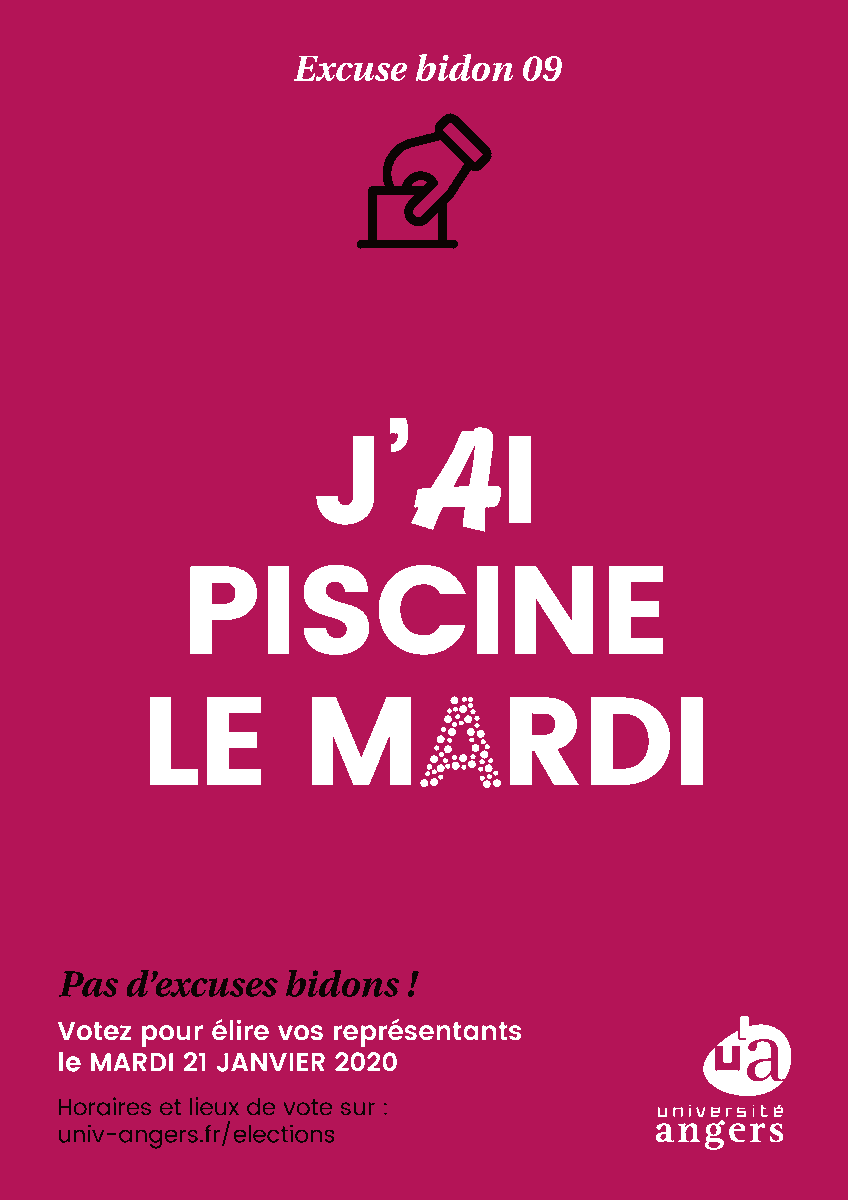 Chouette #campagne "plus d'excuse bidon" pour les#ElectionsUniversitaires déployée par@UnivAngers, repérée par@NewsTankHER Source d'inspiration pour les#Municipales2020 ?#ComPublique#ComESR#COMOSUP https://www.univ-angers.fr/fr/universite/actualites/elections-2020.html?search-keywords=%C3%A9lections …pic.twitter.com/FNSHjWj5qh