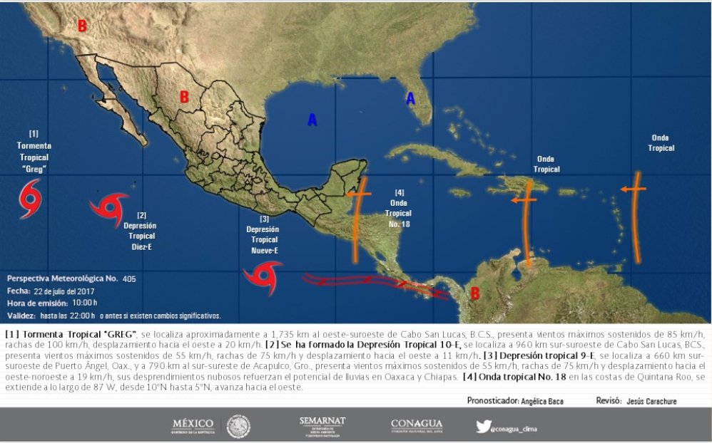 #DepresiónTropical#DIEZ a 960 km al sur-suroeste de Cabo San Lucas, BCS.pic.twitter.com/afcbr89m4j
