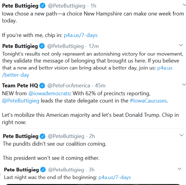 Peter Guaidó Buttigieg's "I'm the winner" narrative appears to be a pre-planned media and social media propaganda campaign. Where do you think he learned this?pic.twitter.com/NGjjzRglCa