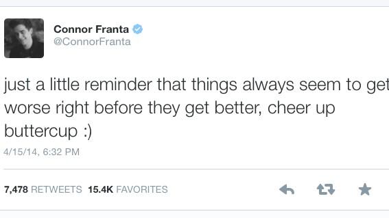 @ConnorFranta babe please please read the tweets under this tag i promise you'll feel much better#ConnorIsFrantasticThanks. Twitter will use this to make your timeline better. UndoUndo