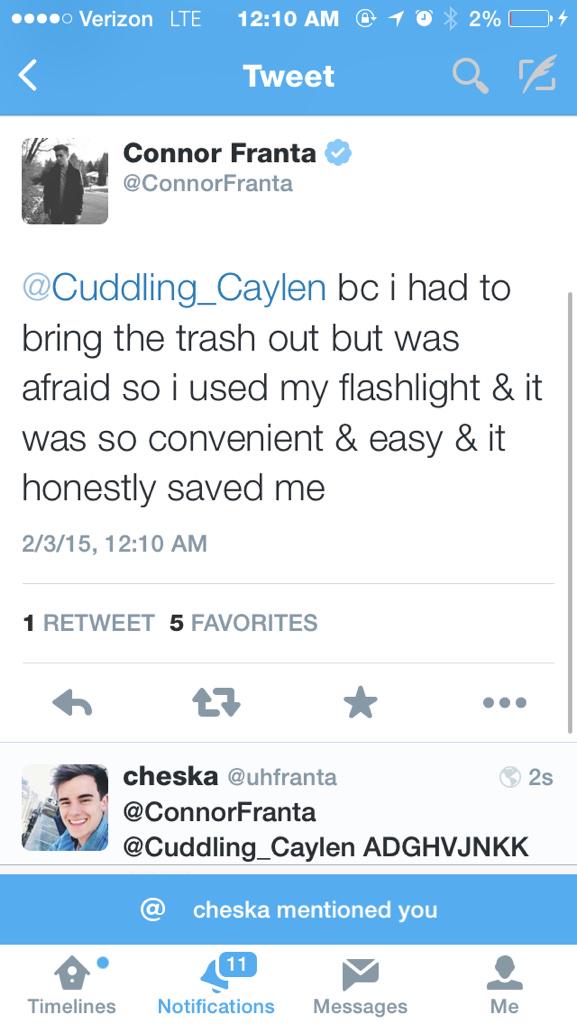 @ConnorFranta I want to see you fighting a murderer with your flashlightThanks. Twitter will use this to make your timeline better. UndoUndo