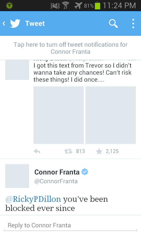 “@ConnorFranta: @RickyPDillon you've been blocked ever since” literally meeee