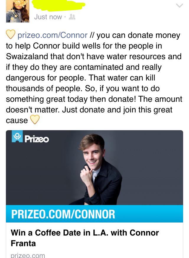 @ConnorFranta CALLING ALL FANS, CALLING ALL FANS! PLEASE DONATE TO CONNOR, IT MEANS SOOOO MUCH TO HIM, THANK YA'LL!!!