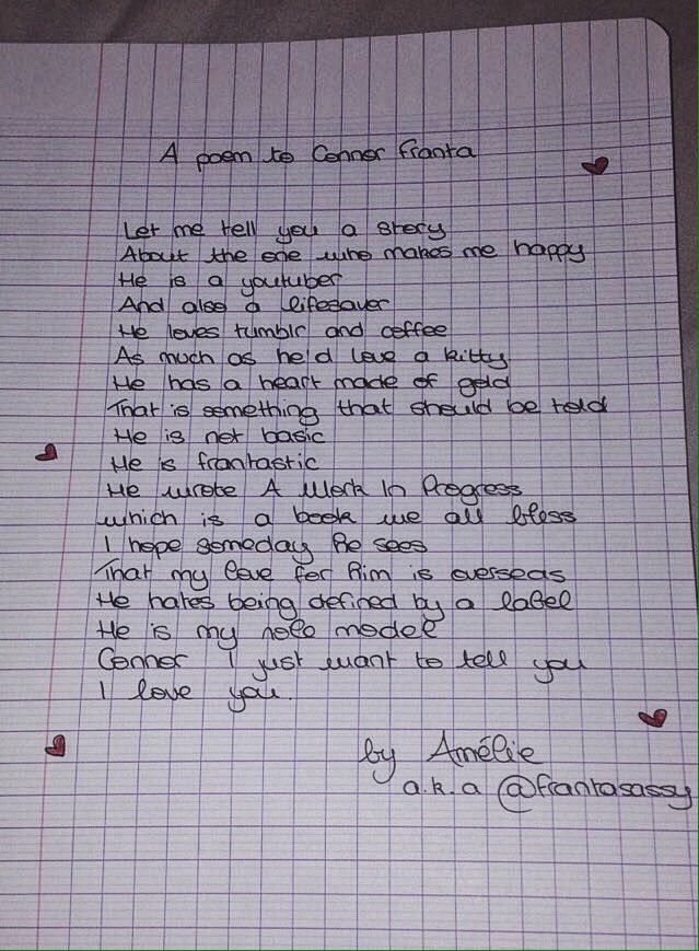 @ConnorFranta boo i saw you yesterday but didn't meet you, but hey i wrote you a poem and got your book (again)