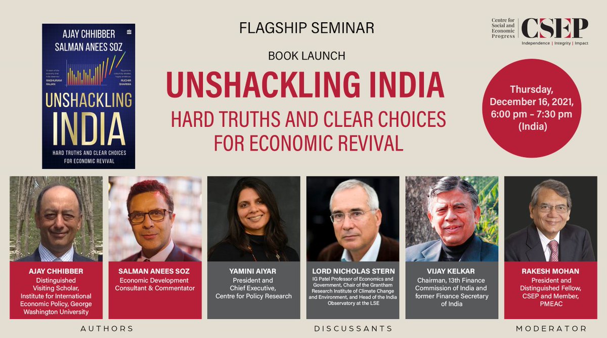 #CSEPFlagshipSeminar Don't forget to join us tomorrow to discuss the book by Ajay Chhibber and@SalmanSoz—Unshackling India: Hard Truths and Clear Choices for Economic Revival. Register to tune in: https://bit.ly/3m3ZTo2 pic.twitter.com/D7cmcSx6pR
