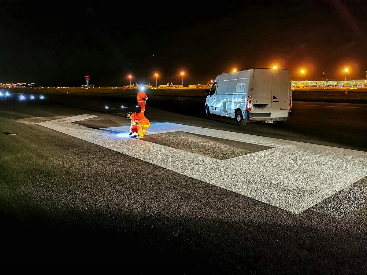 Aquí, anoche pintando las pistas del aeropuerto de
