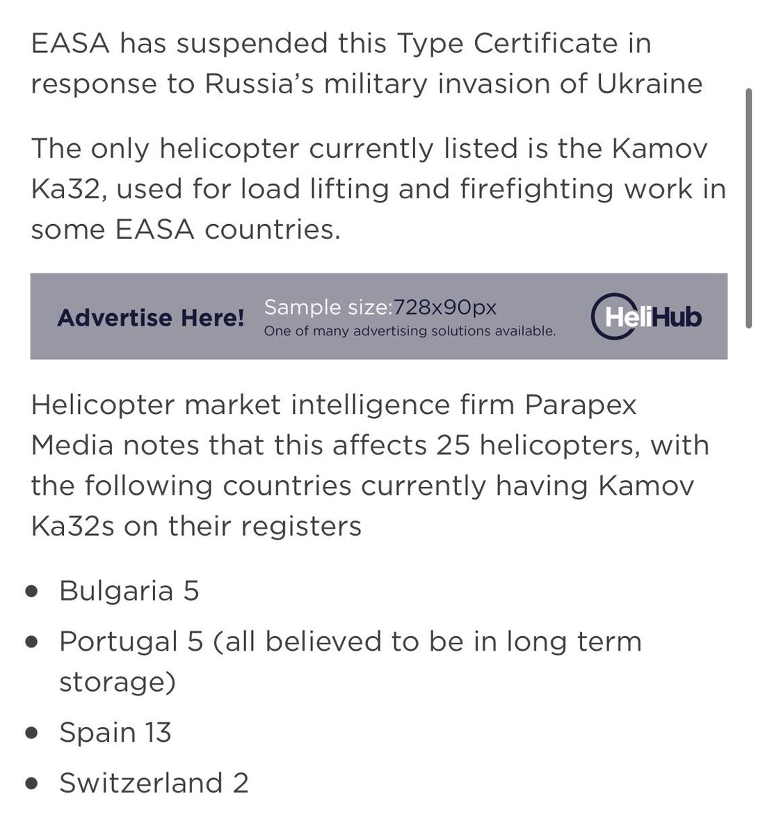 EASA suspends Kamov Ka32 type certificate https://helihub.com/2022/03/24/easa-suspends-kamov-ka32-type-certificate/ …pic.twitter.com/Lq4u5bAcbb