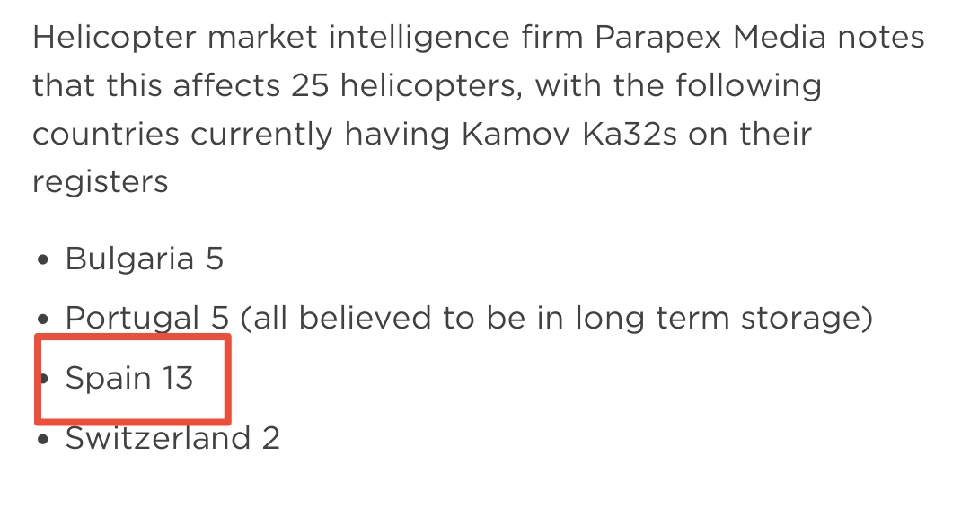 Nos quedamos sin Kamov este verano,se acaba de suspender la certificación de vuelo en la UE y la importación de repuestos, vía