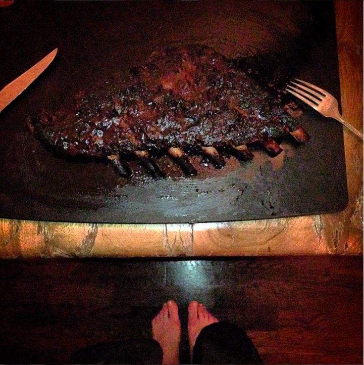 Apple Butter RIbs: mix¼c brsug&anyspicerub; rub2racks babybackribs. 2½h@250F. Mix½c applejuice&butter/¼c maple. Baste ribs; cvr+foil h@250F.