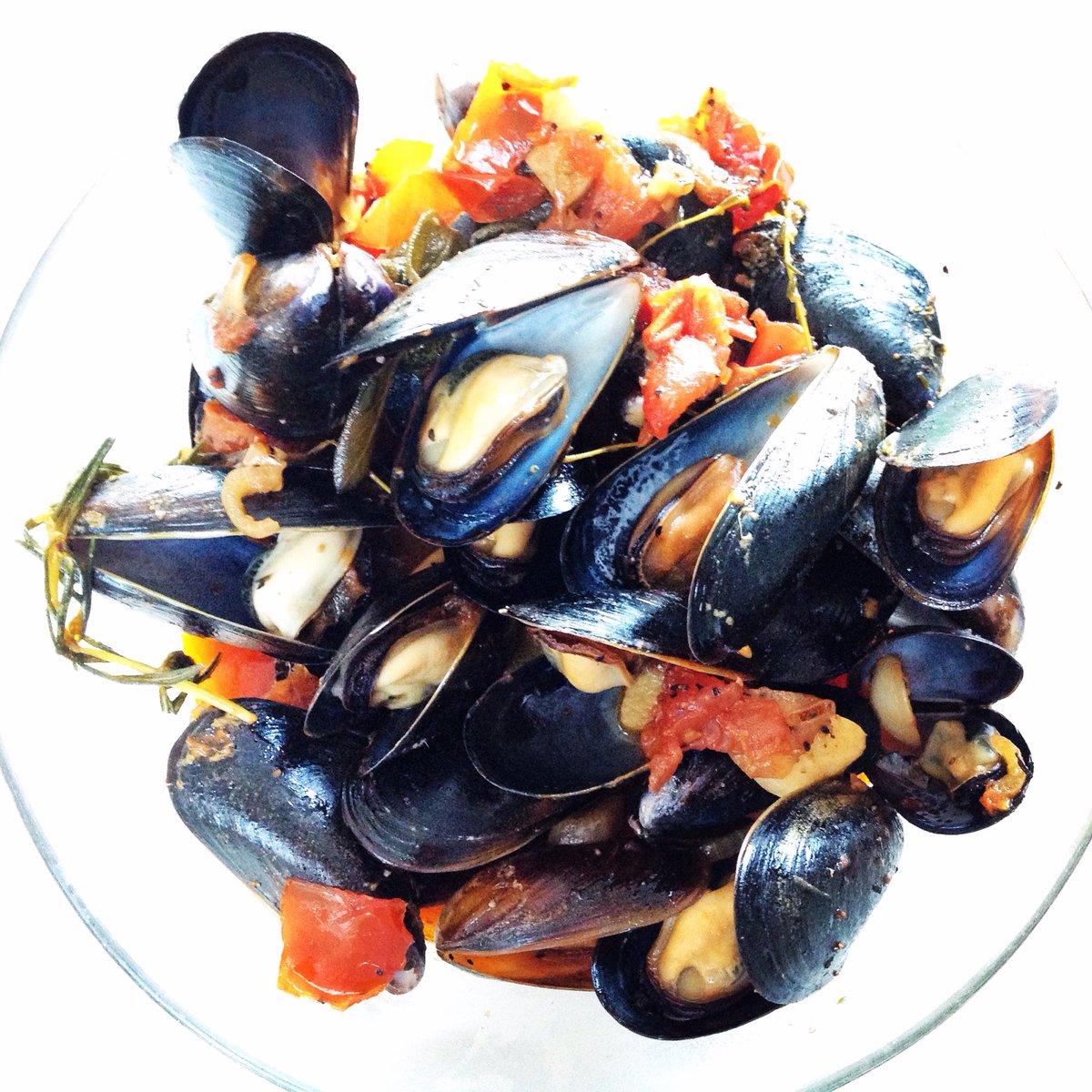 [With toast! Cultivated mussels are usually clean; soak wild ones an hour, pulling beards off at the shell hinge.]pic.twitter.com/u0mUbrm7iW