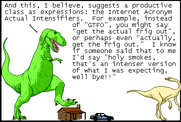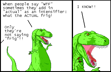 There's a current authorial dunking going around about some low-follower writer lady who's all "using the f-word is bad and unimaginative" and first, you don't need to dunk on every wrong-ass rando, and second, fuck that shit, profanity is a spice, some word-dishes demand HEAT.