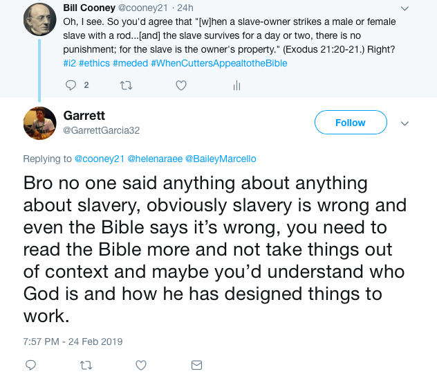 Why don't we focus more on these words: "As for the male and female slaves whom you may have...they may be your property. You may keep them as a possession for your children after you, for them to inherit as property." (Leviticus 25:44-46.) Just gotta respect the word, right bro?