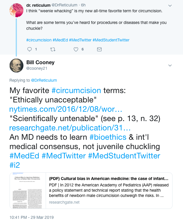 An MD needs to learn #bioethics & int'l medical consensus, not juvenile chuckling #MedEd #MedTwitter #MedStudentTwitter #i2