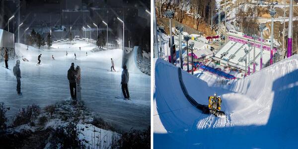 Copenhill versus Sochi's SuperPipe udsigt/view. CH er faktisk både længere og stejlere. Vi glæder os til 2017