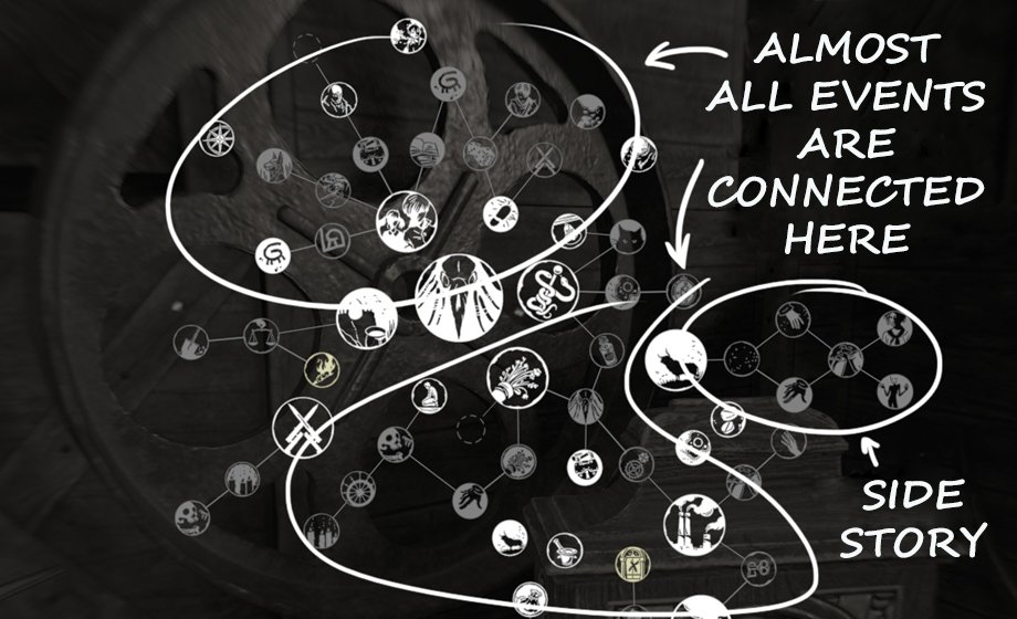 Pathologic 2 uses a mindmap to help the player keep track of the complicated narrative. It's beautiful design, described more fully here: https://www.gamasutra.com/blogs/OlegNesterenko/20190814/348676/Pathologic_2_Mindmap_a_Questlog_People_Actually_Read.php …pic.twitter.com/KicaMz1ZSg