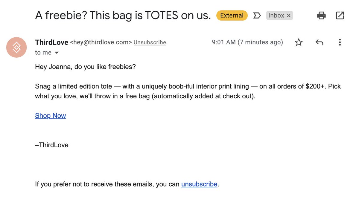 @ThirdLove mixing up styles of emails. this is rare in ecommerce.pic.twitter.com/FhopxEmanS